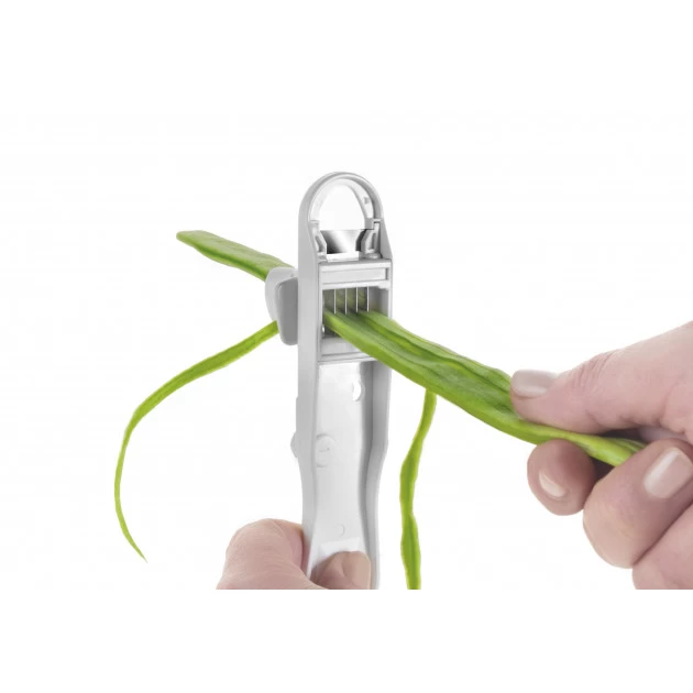 Obtenez en un simple geste, des lamelles d’haricots verts grâce à ce Coupe Haricots Verts Ibili. Poussez le haricot dans le trou de l’ustensile, en tenant le haricot vert bien droit. Tirez ensuite de l’autre côté de l’Effileur à Haricot pour finir d’effiler votre légume.