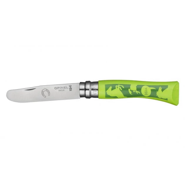 En outre, ce couteau avec une lame en inox de 8 cm résistera à un usage quotidien et conservera ses qualités de découpe. Son manche en bois de charme est verni et décoré de dessin de chevaux verts. Votre enfant pourra donc s’imaginer une multitude d’histoires en se servant de son tout premier Opinel.