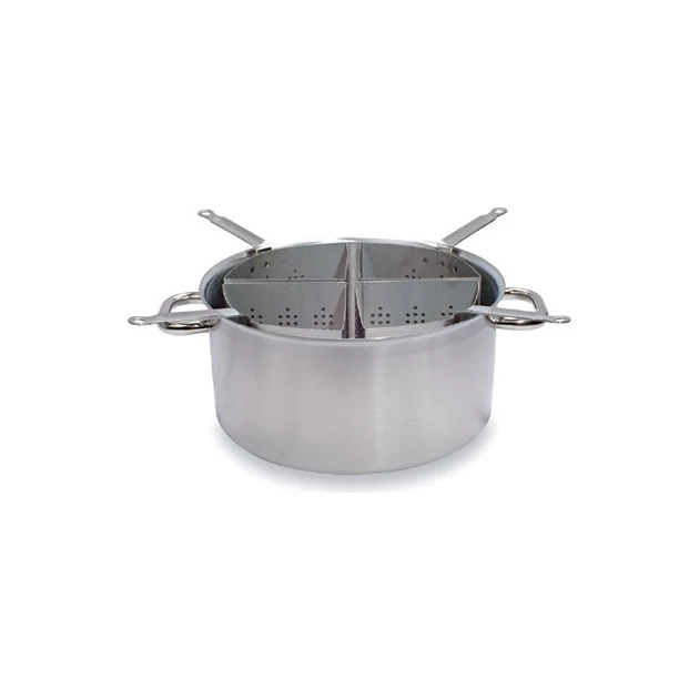 Ensemble constitué d’un faitout inox tous feux Excellence Ø 36 cm et de 4 cuit-pâtes triangulaires.
