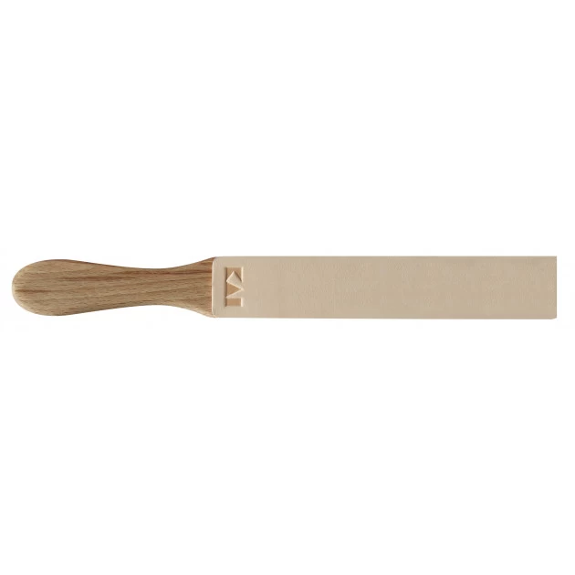 Quelques passages sur le cuir à rasoir suffisent à aiguiser le fil du couteau. Pour terminer l’aiguisage de votre couteau de cuisine, utilisez le cuir côté peau et réalisez les mêmes mouvements.