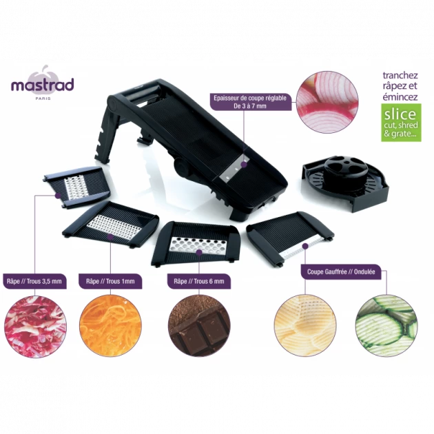 Caractéristiques Mandoline Multi-râpes Mastrad :