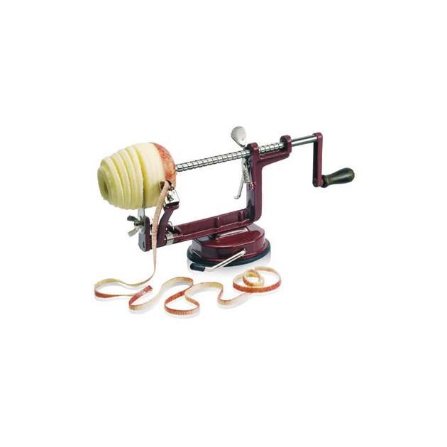Pèle pommes : épluche, tranche et vide la pomme en une seule opération. Peut être utilisé pour éplucher les pommes de terre et les trancher (chips…)