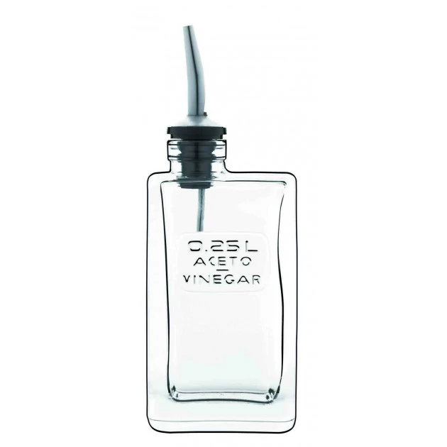 L’étiquette « 0.25 L Aceto Vinegar » est moulée dans le verre du vinaigrier OPTIMA Luigi Bormioli, ce qui lui confère une décoration sobre.
